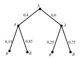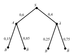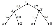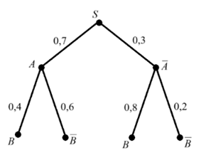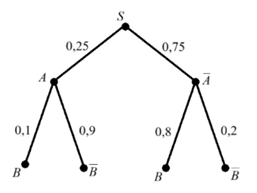 На рисунке изображено дерево некоторого случайного опыта S, в котором рассматриваются события А и В. Найдите вероятность события В.