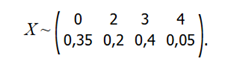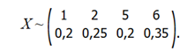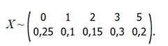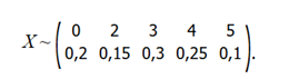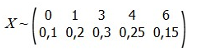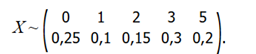 X ~ (0, 1, 3, 4, 6) с вероятностями (0.1, 0.2, 0.3, 0.25, 0.15).