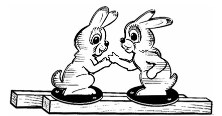 Рассмотри рисунок, где изображена игрушка «Зайцы». Как ты думаешь, что будут делать эти фигурки, если двигать планки, как в игрушке «Кузнецы»?