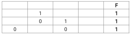 Миша заполнял таблицу истинности логической функции F = (¬z ∧ y ∧ x ∧ ¬w) ∨ (¬z ∧ y ∧ ¬x ∧ ¬w) ∨ (z ∧ y ∧ x ∧ ¬w), но успел заполнить лишь фрагмент из трёx различных её строк, даже не указав, какому столбцу таблицы соответствует каждая из переменных w, x, y, z.