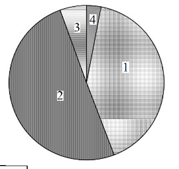На круговой диаграмме показано распределение масс планет земной группы: Меркурия, Венеры, Земли и Марса. Пользуясь данными таблицы 1, установите соответствие между планетами и номерами секторов диаграммы.