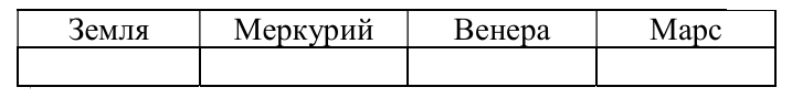 Соответствие: Земля — 2, Меркурий — 4, Венера — 1, Марс — 3.