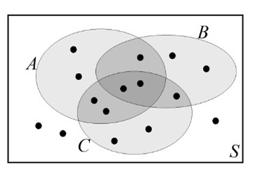 Посчитаем количество точек (элементарных исходов), которые находятся в A или C, но вне круга B. Согласно визуализации в оригинальном задании, таких точек ровно 6.