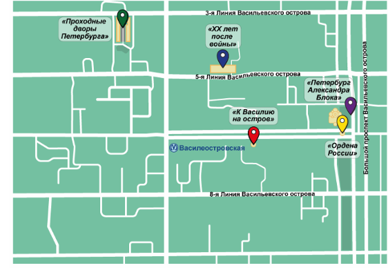 Тайники: «Город, где сбываются желания», «Атланты и кариатиды», «История одного места», «Музей теней», «Дворы Капеллы».