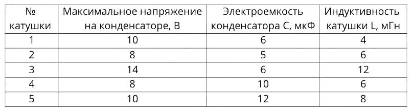 Ученик изучает свободные электромагнитные колебания. В его распоряжении имеются пять аналогичных колебательных контуров с различными катушками индуктивности и конденсаторами, характеристики которых указаны в таблице. Какие два колебательных контура необходимо взять ученику для того, чтобы на опыте исследовать зависимость частоты свободных колебаний силы тока, протекающего в катушке, от электроёмкости конденсатора?