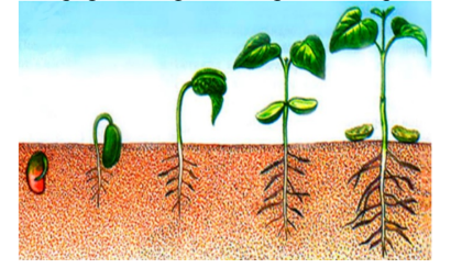 На рисунке изображён проросток фасоли в разные периоды времени. Какое ОБЩЕЕ свойство живых систем иллюстрирует природное явление, происходящее с растением?