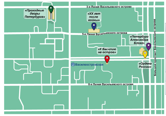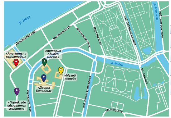 Тайники: «Город, где сбываются желания», «Атланты и кариатиды», «История одного места», «Музей теней», «Дворы Капеллы».