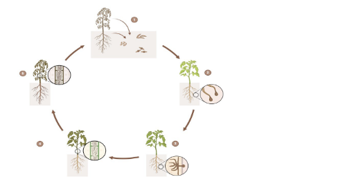 Основное распространение происходит при помощи зооспор, подвижных в капельно-жидкой влаге. В межклетниках тканей формируются зиготы, прорастающие в диплоидный мицелий, который и вызывает симптомы увядания.